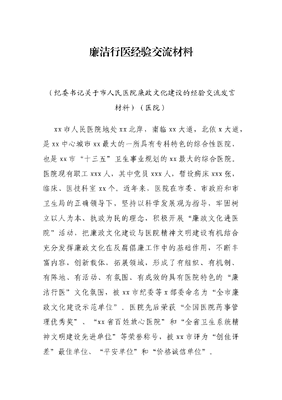 廉洁行医经验交流材料(纪委书记关于市人民医院廉政文化建设的经验交流发言材料)(医院).docx