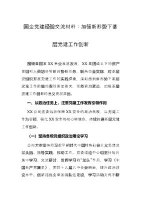 国企党建经验交流材料:加强新形势下基层党建工作创新.docx