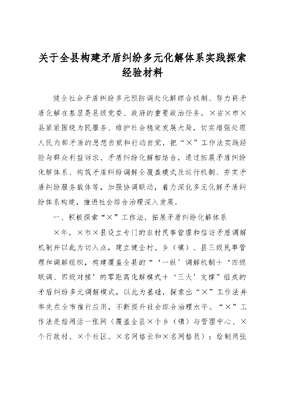 关于全县构建矛盾纠纷多元化解体系实践探索经验材料.docx