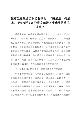 医疗卫生服务工作经验做法:“强基层、保基本、建机制” 让群众就近享受优质医疗卫生服务.docx