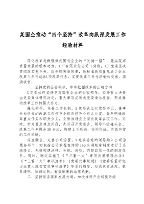 某国企推动“四个坚持”改革向纵深发展工作经验材料.docx