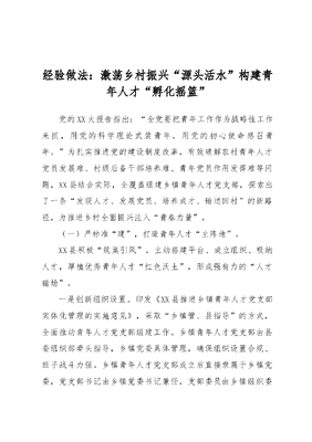 经验做法:激荡乡村振兴“源头活水”构建青年人才“孵化摇篮”.docx