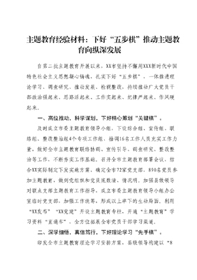 主题教育经验材料:下好“五步棋”推动主题教育向纵深发展.docx