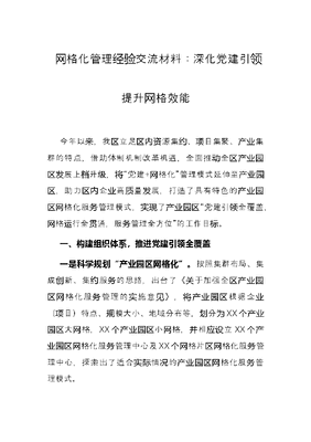 网格化管理经验交流材料:深化党建引领 提升网格效能.docx