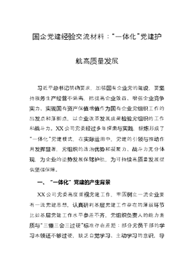 国企党建经验交流材料:“一体化”党建护航高质量发展.docx