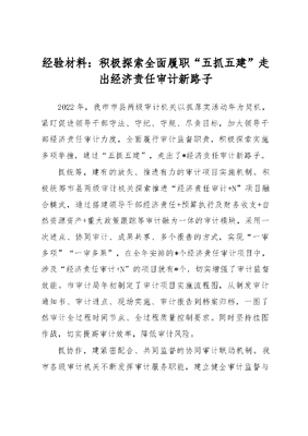 经验材料:积极探索全面履职“五抓五建”走出经济责任审计新路子.docx