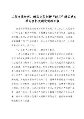 工作交流材料:消防支队创新四三模式助力学习型机关建设提档升级.docx