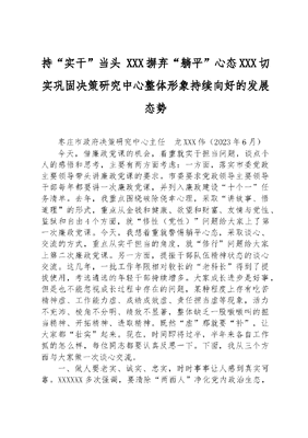 持“实干”当头 摒弃“躺平”心态 切实巩固决策研究中心整体形象持续向好的发展态势.docx