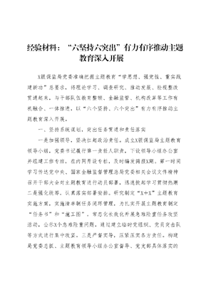 经验材料:六坚持六突出有力有序推动主题教育深入开展.doc.docx