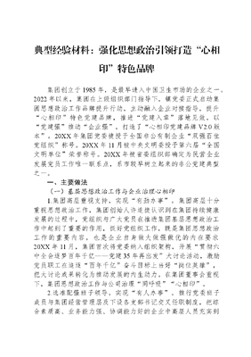 典型经验材料:强化思想政治引领+打造“心相印”特色品牌.docx