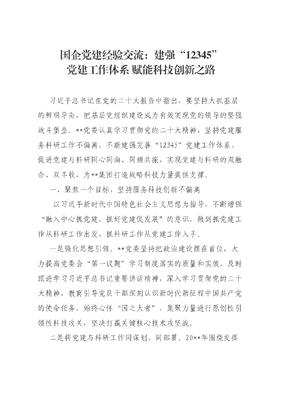 国企党建经验交流:建强“12345”党建工作体系 赋能科技创新之路.docx