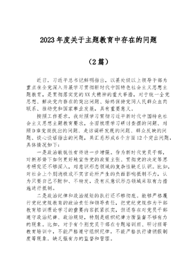 (2篇)2023年度关于主题教育中存在的问题.docx