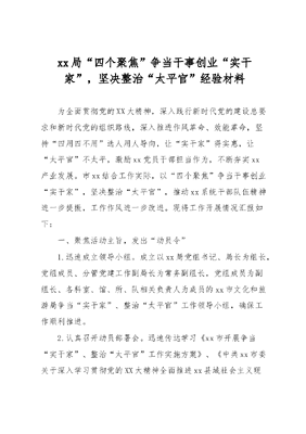 xx局“四个聚焦”争当干事创业“实干家”,坚决整治“太平官”经验材料.docx