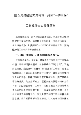 国企党建经验交流材料:开展“一防三保”工作扛好央企责任使命.docx