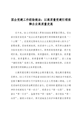 国企党建工作经验做法:以高质量党建引领保障企业高质量发展.docx