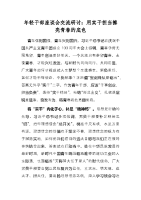年轻干部座谈会交流研讨:用实干担当擦亮青春的底色.docx