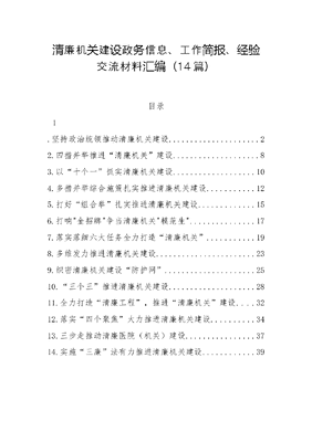 (14篇)清廉机关建设政务信息、工作简报、经验交流材料汇编.docx