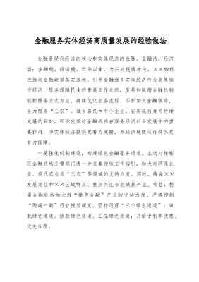 金融服务实体经济高质量发展的经验做法.docx
