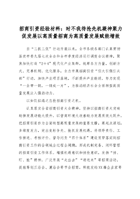 招商引资经验材料:时不我待抢先机 凝神聚力促发展 以高质量招商为高质量发展赋能增效 .docx