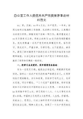 办公室工作人员优秀共产党员推荐事迹材料范文.docx