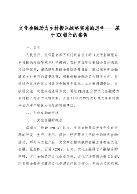 文化金融助力乡村振兴战略实施的思考 ——基于XX银行的案例.docx