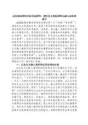 高校思政教师经验交流材料:把红色文化精神财富融入思政课教学.docx