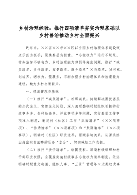 乡村治理经验:推行四项清单夯实治理基础以乡村善治推动乡村全面振兴.docx
