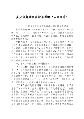 第二批全国乡村治理典型案例多元调解带来乡村治理的“四降两升”.docx