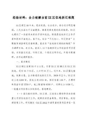 经验材料:全力破解当前XX区征地拆迁难题.docx