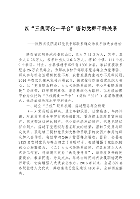第一批全国乡村治理典型案例丨陕西省汉阴县:以“三线两化一平台”密切党群干群关系.docx