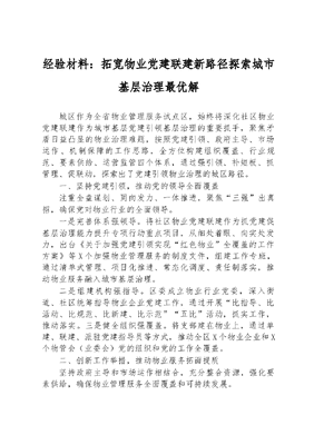 经验材料:拓宽物业党建联建新路径探索城市基层治理最优解.docx