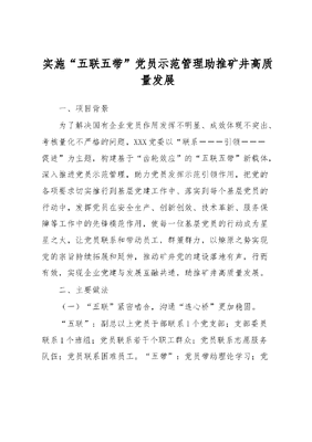 经验材料:实施“五联五带”党员示范管理助推矿井高质量发展.docx