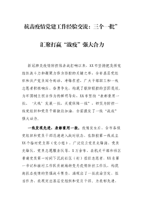 抗击疫情党建工作经验交流:三个一批”汇聚打赢“战疫”强大合力.docx