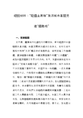 经验材料:“轮值主席制”激活城市基层党建“细胞核”.docx
