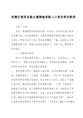 党建引领再启航立德铸魂育新人六育并举开新局经验材料.docx