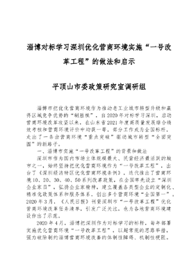 淄博对标学习深圳优化营商环境实施“一号改革工程”的做法和启示.docx