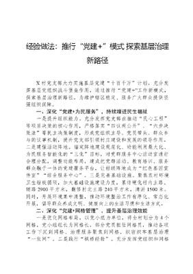 经验做法:推行“党建+”模式,探索基层治理新路径.docx