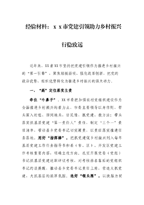 经验材料:xx市党建引领助力乡村振兴行稳致远.docx