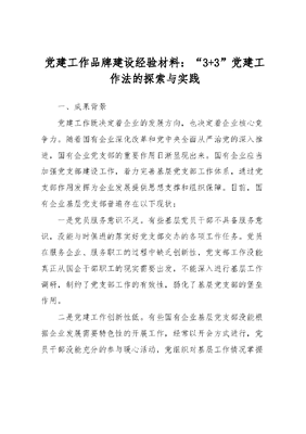 党建工作品牌建设经验材料:“3+3”党建工作法的探索与实践.docx