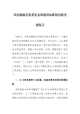 局直属机关党委党支部建设标准化经验交流发言.docx