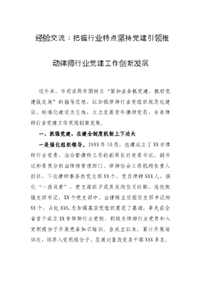 经验交流:把握行业特点坚持党建引领推动律师行业党建工作创新发展.docx