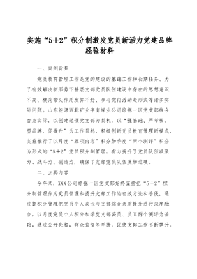 实施“5+2”积分制激发党员新活力党建品牌经验材料.docx