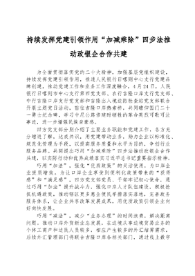 持续发挥党建引领作用“加减乘除”四步法推动政银企合作共建.docx