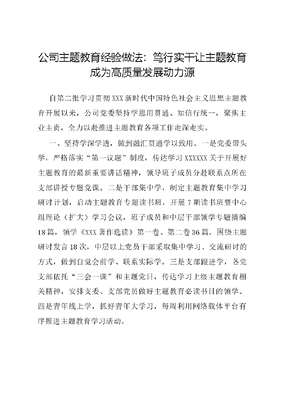 公司主题教育经验做法:笃行实干 让主题教育成为高质量发展动力源.docx