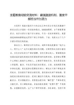 主题教育经验交流材料:建强激励机制,激发干部担当作为活力.docx