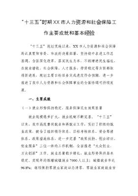 “十三五”时期XX市人力资源和社会保障工作主要成就和基本经验.docx