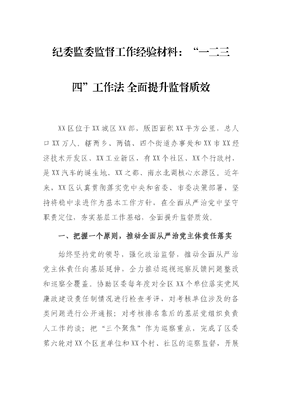 纪委监委监督工作经验材料:“一二三四”工作法 全面提升监督质效.docx