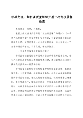 经验交流:如何高质量组织开展一次专项监督检查.docx