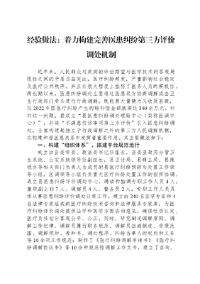 经验做法:着力构建完善医患纠纷第三方评价调处机制.docx