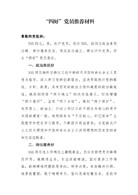 (原创首发,一次买断下架)“四好”党员推荐材料.docx